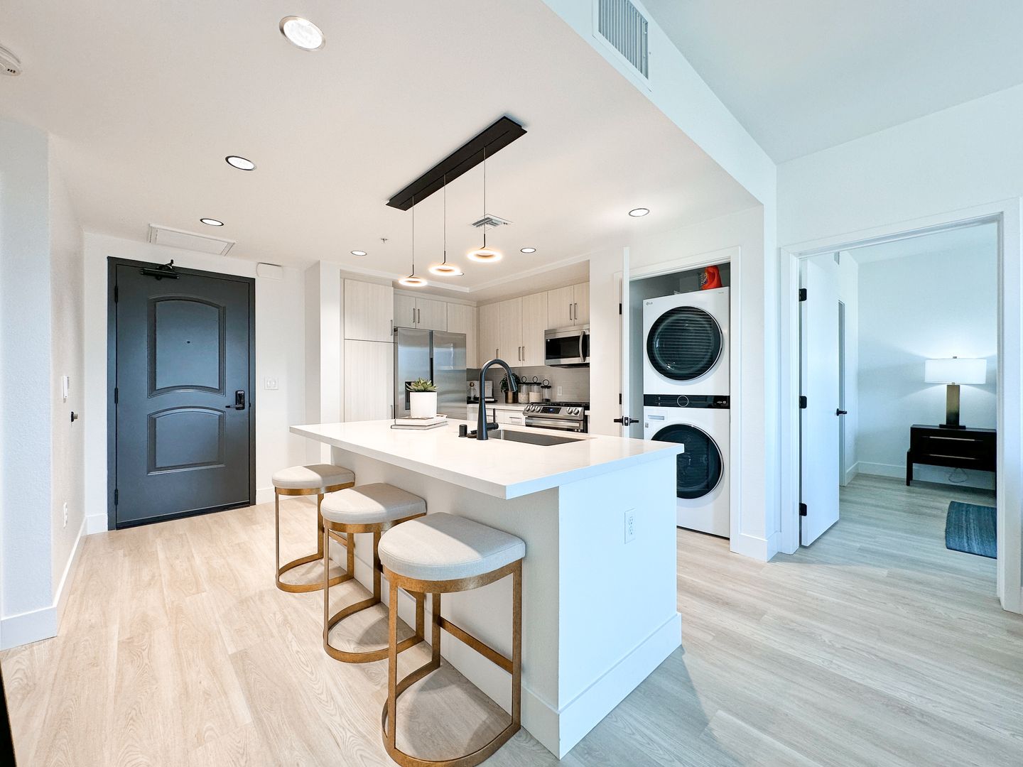 In-unit laundry, dishwasher, and modern flooring